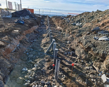 A more imaginative title will come soon…. First major problem has come up… The main drain from the road above is supposed to run through a two metre separation between the plots. However, it has been placed right on our boundary instead and means that the micro-pile wall needs to…